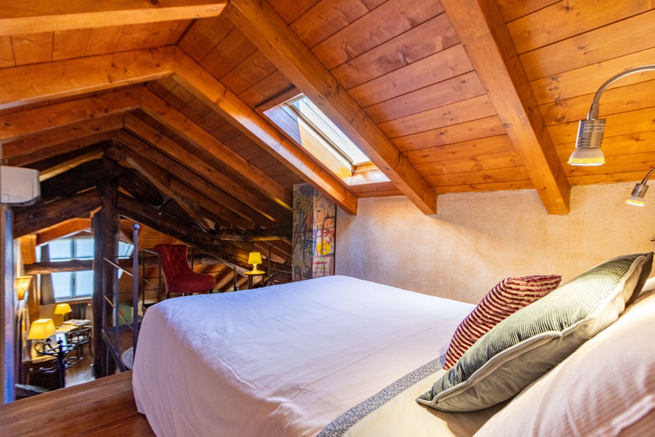 L’ampio soggiorno, offre un comodo divano letto matrimoniale e una cucina dal design unico. Il vero gioiello? Il balconcino privato da cui godersi un caffè ammirando lo scorcio sui tetti della città e sul lago. La zona notte si sviluppa su un caratteristico soppalco, completa di una cabina armadio, un grande bagno con doccia e un ripostiglio/lavanderia. Disponibili posti auto gratuiti direttamente in strada e nelle immediate vicinanze.